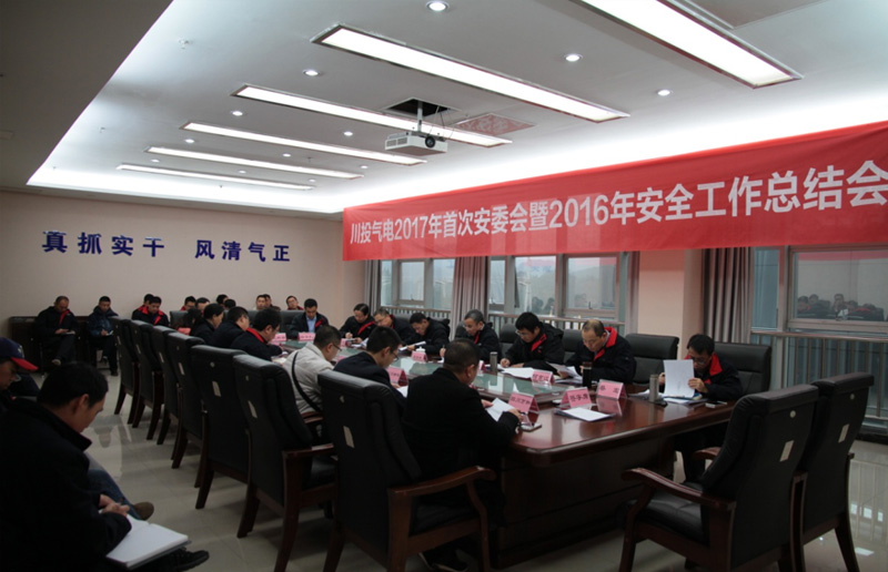 2017年1月10日9時30分,川投氣電2017年度首次安委會擴大會議在公司四樓會議室召開。公司安全生產(chǎn)管理委員會成員、部門專兼職安全員及外委維護(hù)單位項目經(jīng)理、安全員參加了會議。