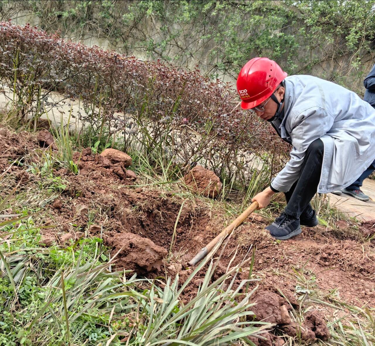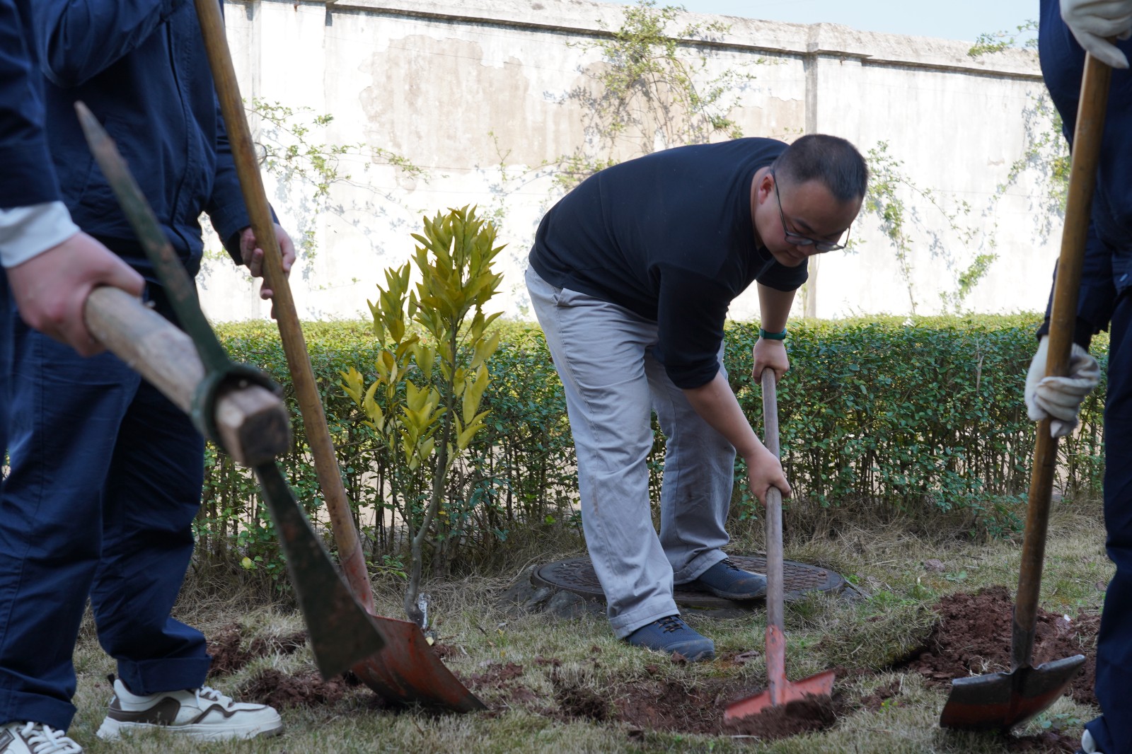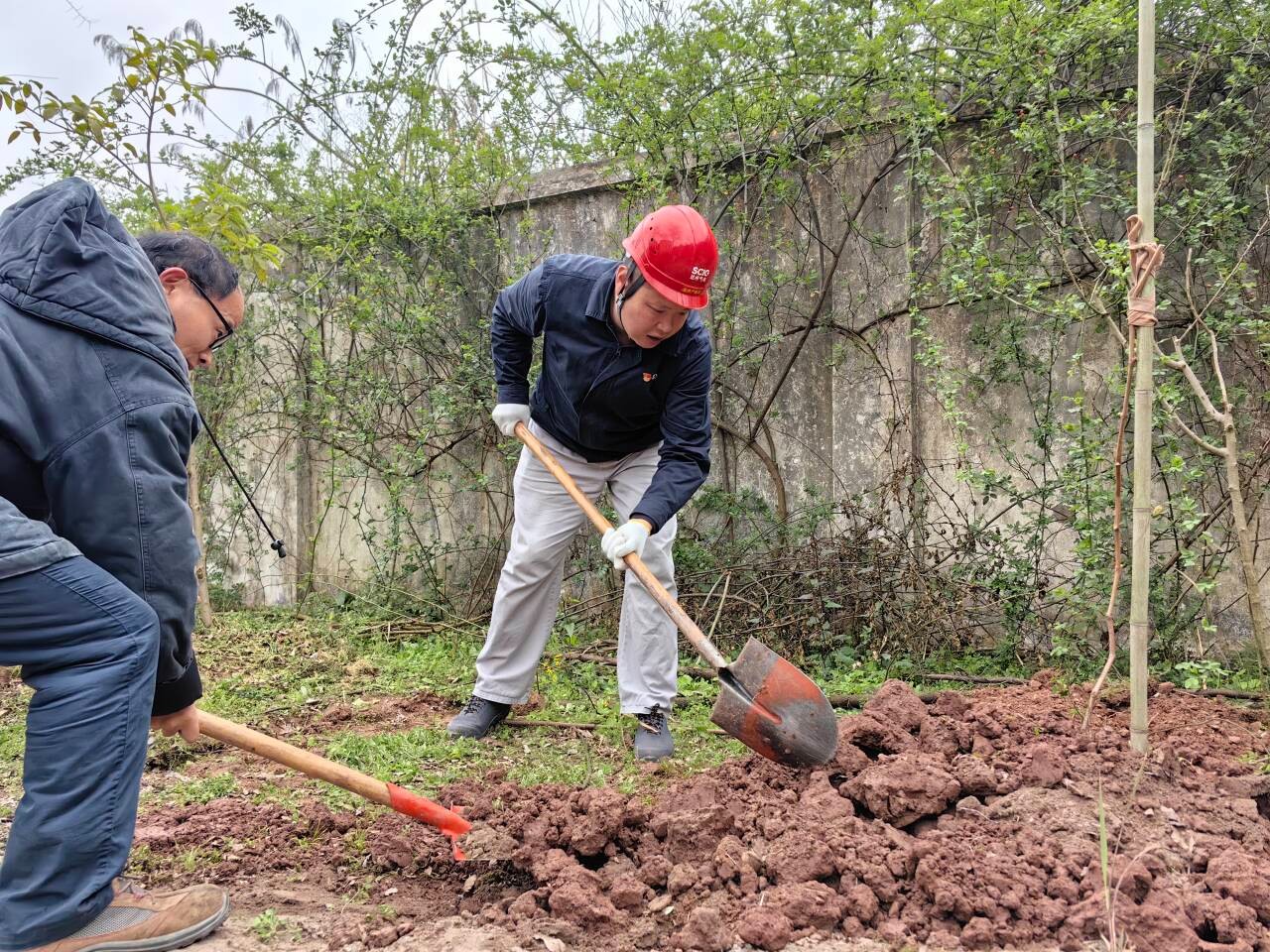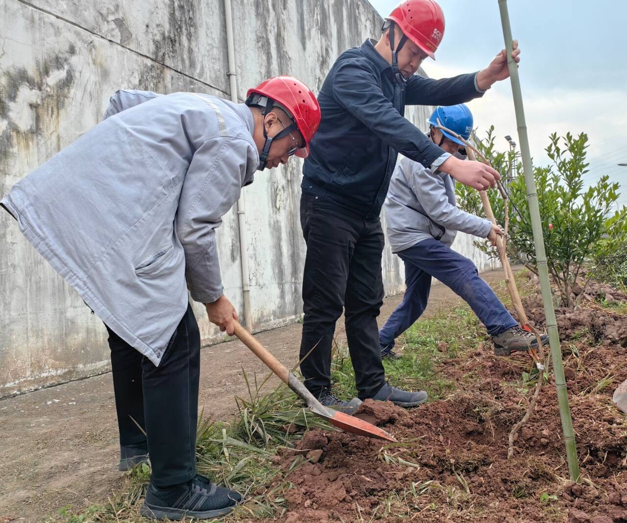 迎著和煦的微風,大家熱情洋溢、干勁十足,在歡聲笑語中一邊討論栽樹技巧,一邊為企業(yè)發(fā)展建言獻策,現(xiàn)場氣氛融洽熱烈。踏著溫潤的泥土,大家分工協(xié)作、配合默契,搬運樹苗、揮鋤挖土、扶苗填坑、揮鍬培土、夯實土層、拎桶澆水,合力栽下一棵棵樹苗,為站內(nèi)增添了新的生機與活力,期待來年開花結(jié)果。